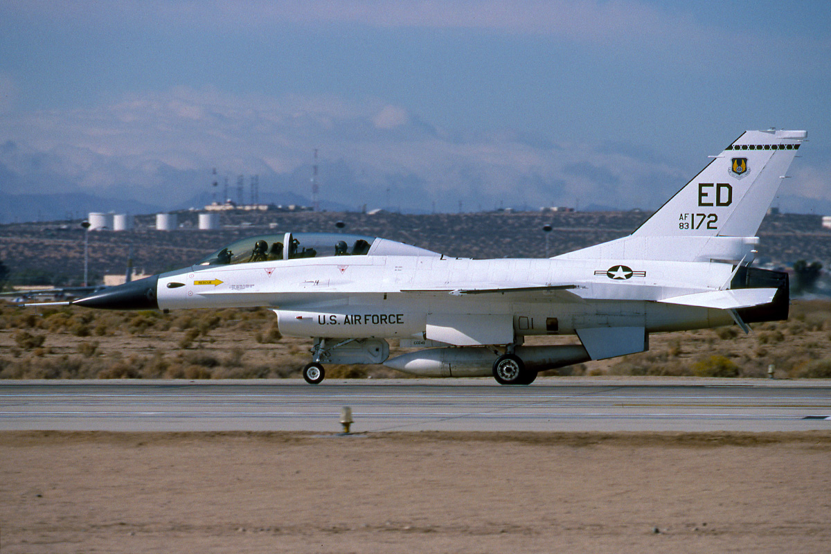 Old Arkansas Guard “Flying Razorbacks” F-16A 83-1087 at Nellis for Red Flag 99-1, Oct 1998. This was late Friday at the end of period one when RF units used to swap out on the middle Saturdays after 2 weeks, made for a very busy day!