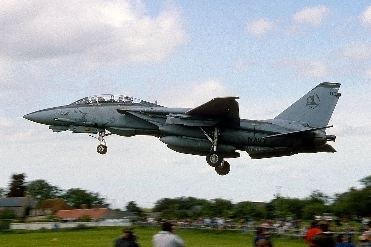 Scanning some of my old F-14 slides, unfortunately I never had as many as I’d like now, missing out on Oceana in the Tomcat era and getting a brief visit to Miramar in 1989 plus a few caught at different bases. Here’s one in the UK from VF-142 taking part in the massive D-Day 50th anniversary flypast over Portsmouth in June 1995. Seen arriving back at Yeovilton on the Sunday of the flypast. That field was packed with people with some on the fence by the lights where it was a miracle nobody was killed by the landing Mig’s and Sukhoi’s!