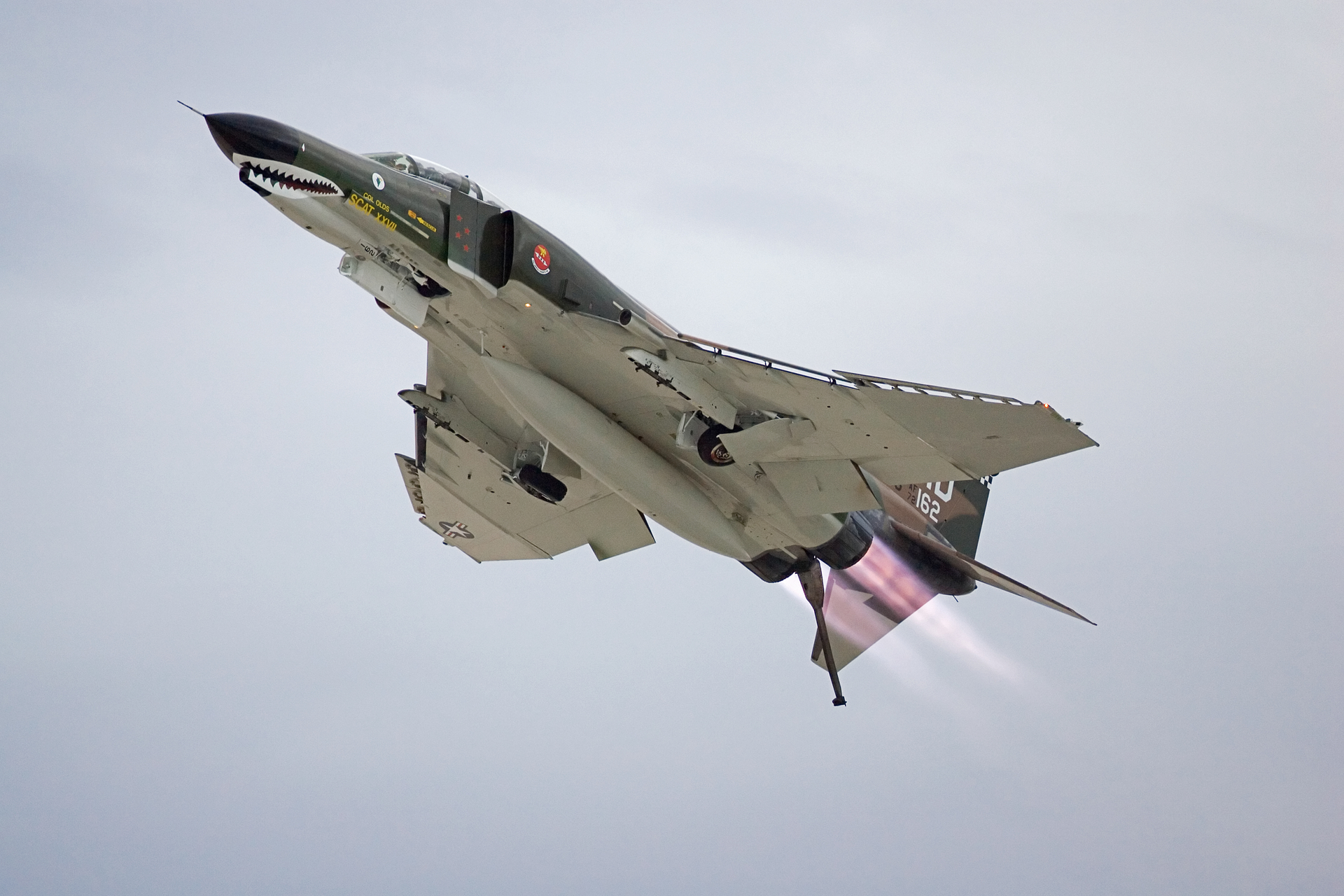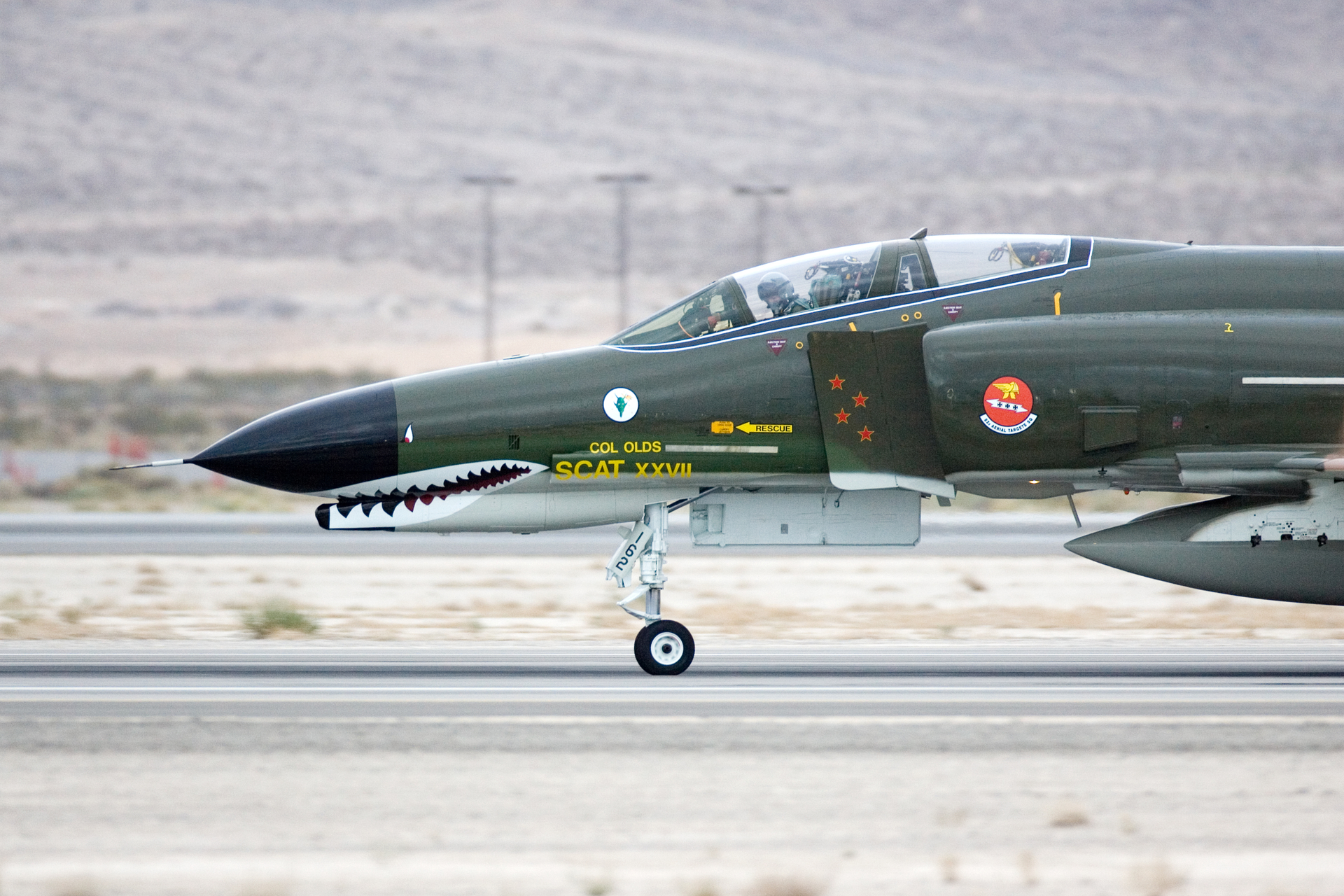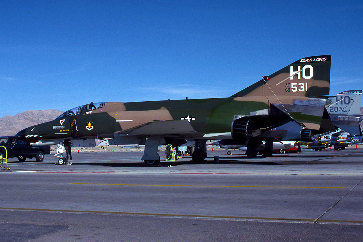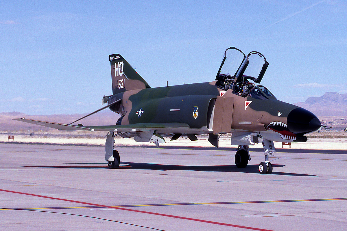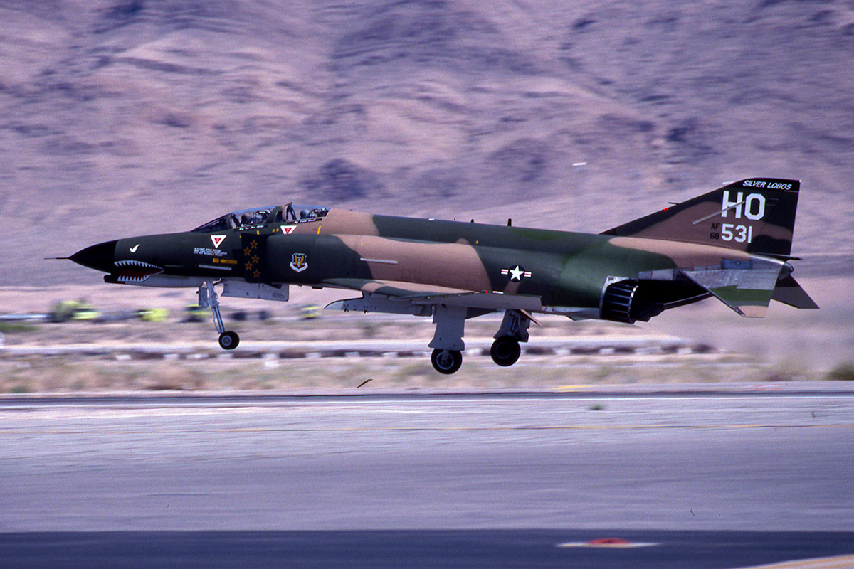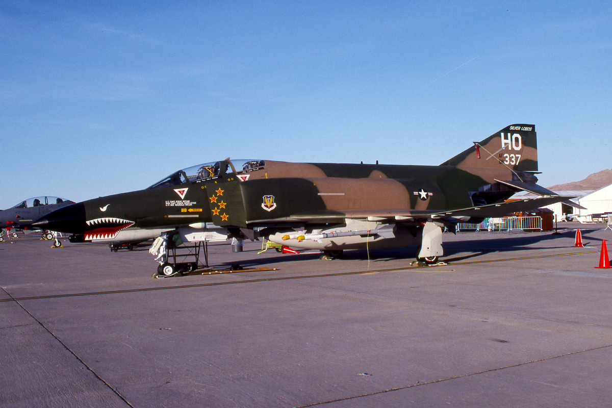 The pair of SEA camo 20th FS F-4Es at the Golden Air Tattoo at Nellis in 1997. Flown by Vietnam aces Steve Richie and Chuck DeBellevue.